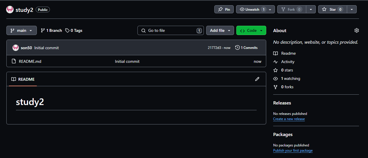 - 즉, 백지 상태의 원격저장소에 로컬저장소의 작업을 push 해야함