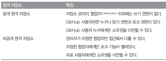 비공개 원격 저장소와 공개 원격 저장소 특징