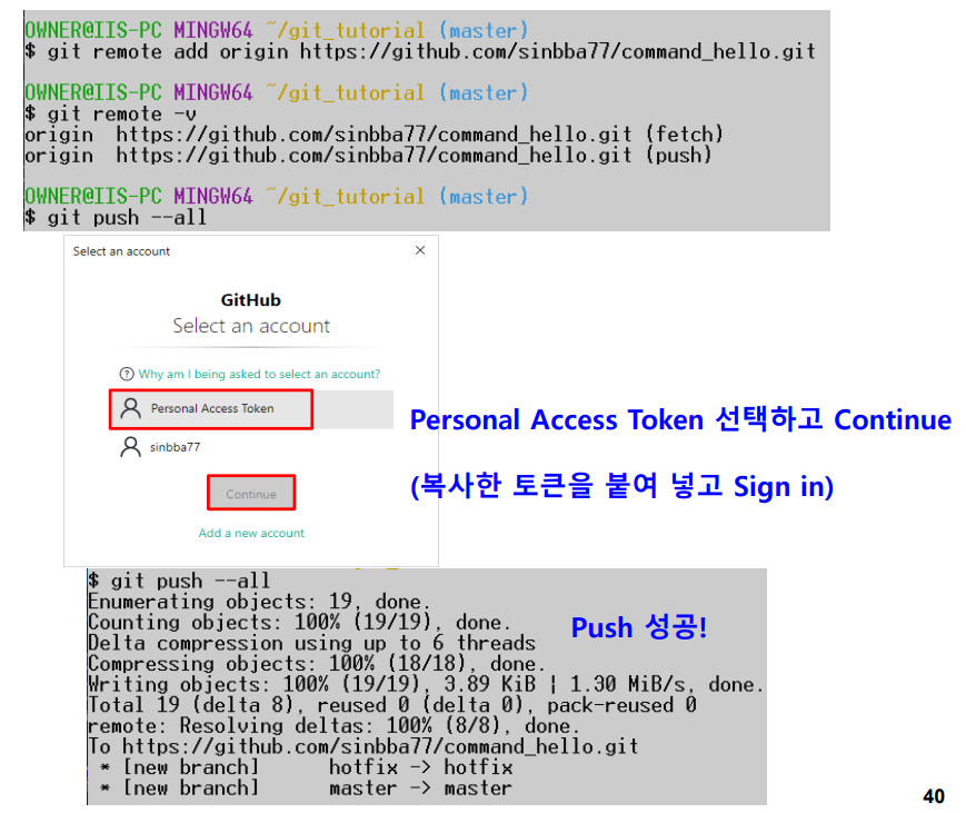 로컬 저장소 git_tutorial에서 원격 저장소 command_hello에 연결