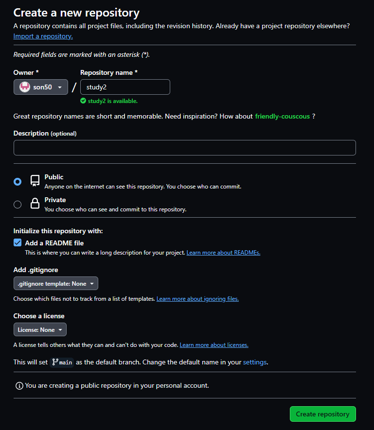 다른 사람의 원격 저장소를 내 계정으로 복사하기