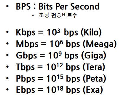 - Ethernet : 10Mbps, 100Mbps, 1Gbps, 10Gbps, 40G/100G