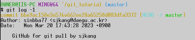 태그가 붙어졌는지 확인하기: 가장 최근 커밋 1개에 대한 태그 정보 확인