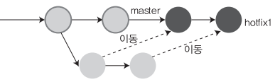 - master 뒤에 hotfix1 브랜치가 늘어선 모양이 됨