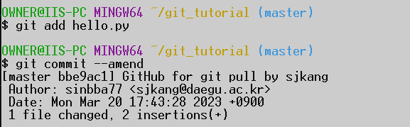 (실습 1) 마지막 커밋과 커밋하지 않은 상태에 있는 변경 내역이 서로 합쳐진 새 커밋 생성