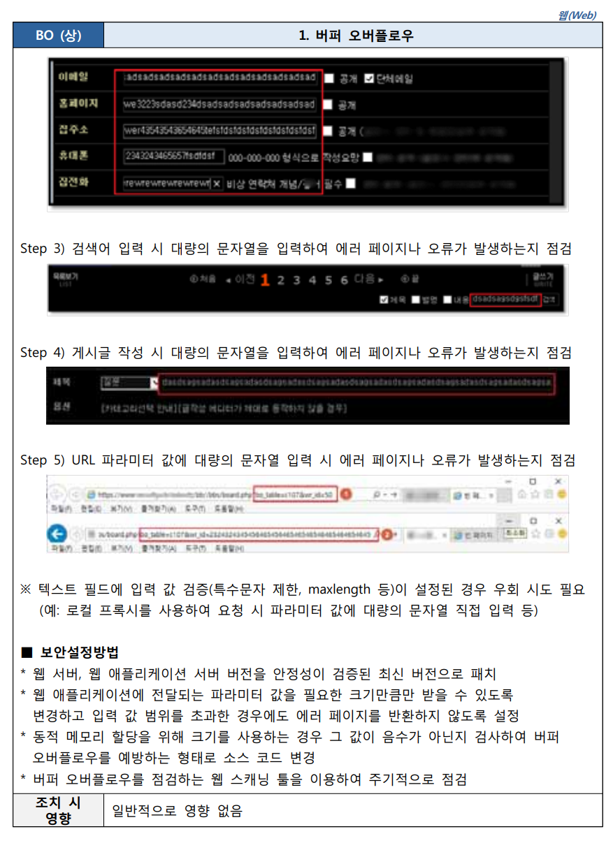 버퍼에 데이터를 쓰는 소프트웨어가 버퍼의 용량을 초과하여 인접한 메모리 위치를 덮어쓸 때 발생하는 비정상적인 현상