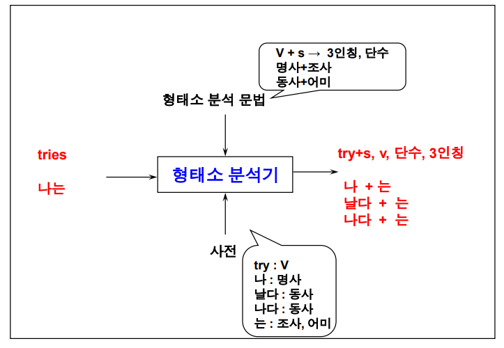 - 입력된 문자열을 분석하여 형태소라는 기본 단위로 분류