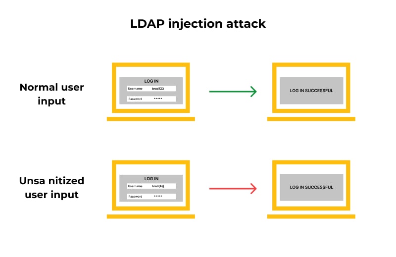 이로 인해 검증되지 않은 쿼리에 대한 사용 권한 부여 및 LDAP 트리 내의 내용 수정과 같은 임의 명령이 실행될 수 있다.