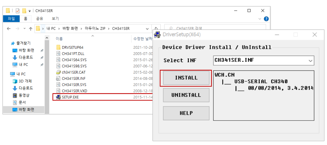 USBserial_driver -> SETUP.EXE 실행