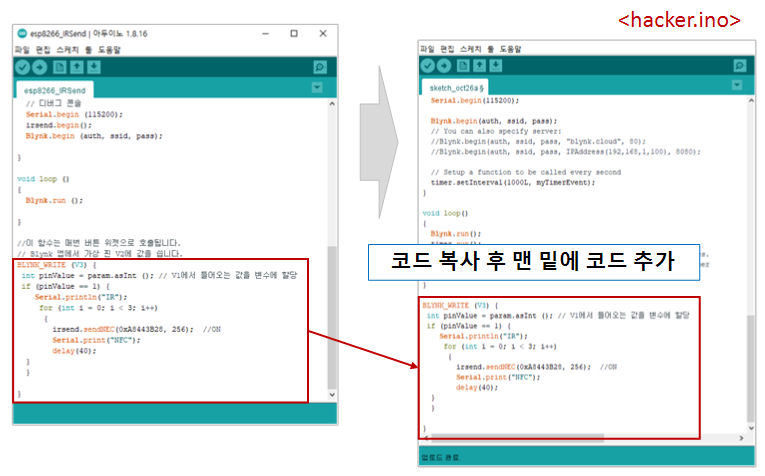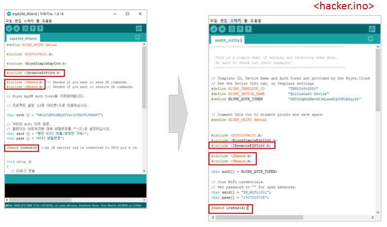 표시된 헤더 파일을 <hacker.ino> 코드에 추가