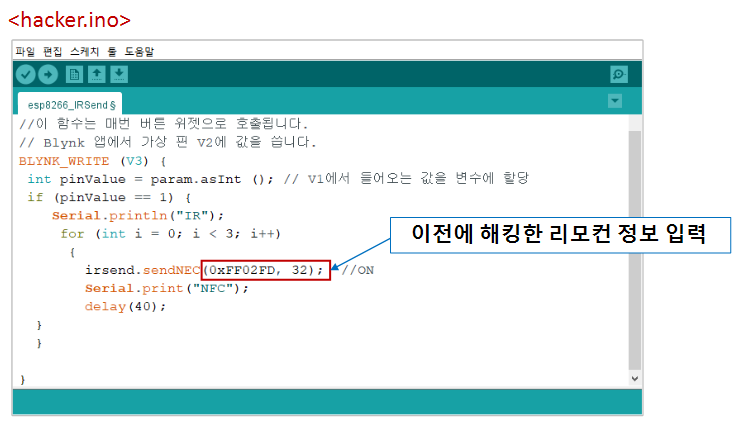 esp8266_IRSend.ino 파일에서 BLYNK_WRITE (V3) 코드 추가