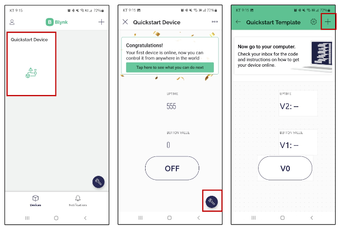 Quickstart Device 클릭