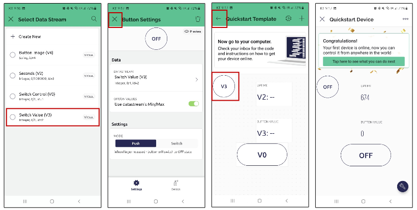 Button 기능 추가, OFF 버튼 클릭, DATASTREAM 클릭