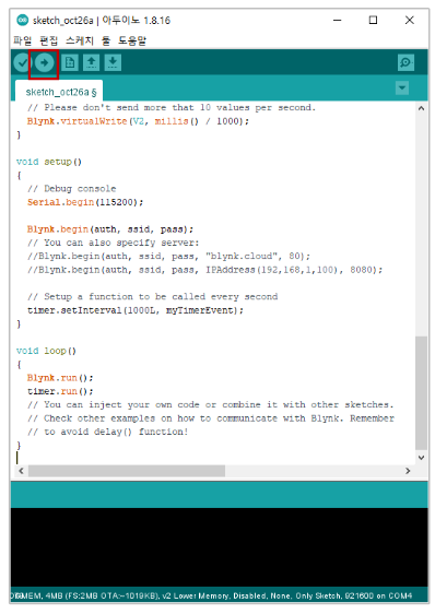 업로드 버튼 누른 후 시리얼 모니터 확인