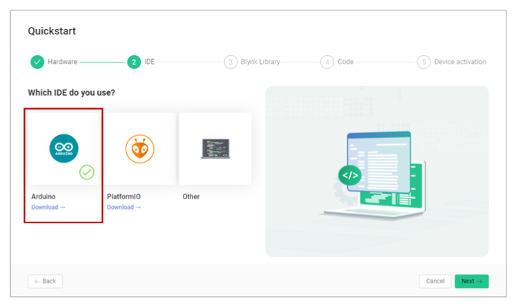 Which IDE do you use? -> Arduino 선택