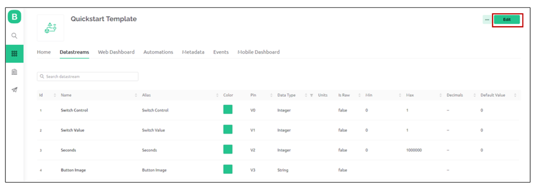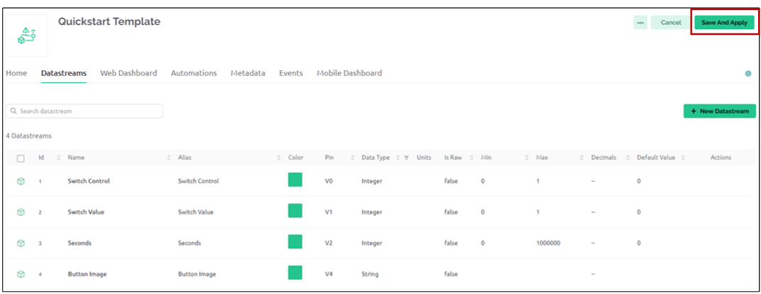 Datastreams 클릭