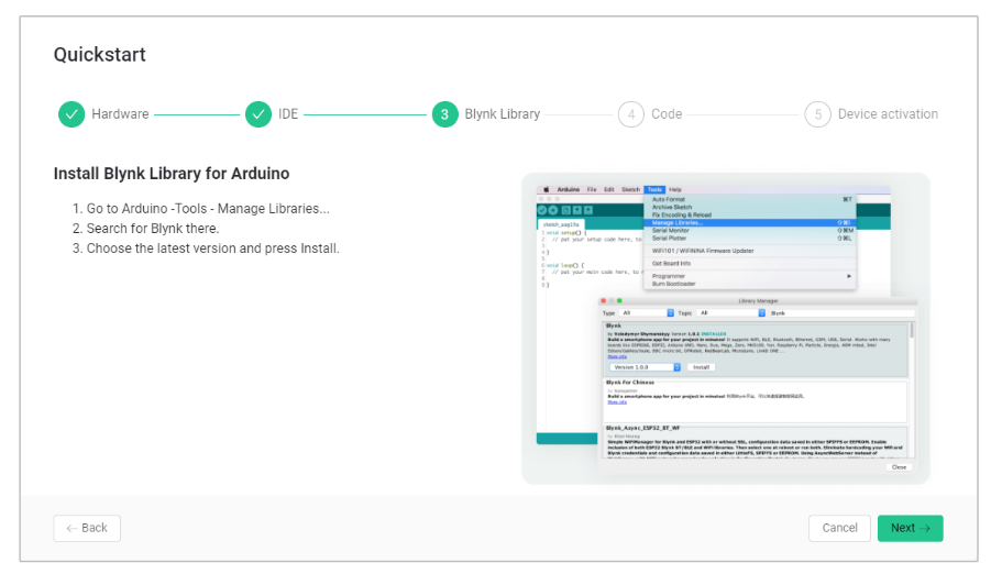 툴 -> 라이브러리 관리 -> blynk version(1.3.0) 설치