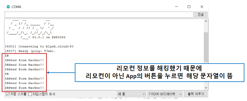 리모컨을 수신부 쪽으로 향한 후 눌러주면 시리얼 모니터 확인