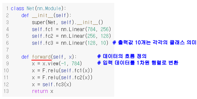 784 - 256 - 128 순으로 연결되면서 10개가 최종 출력