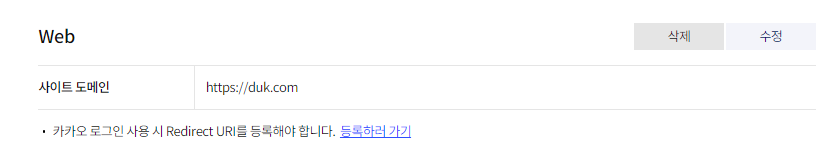 도메인 설정 후 Ridirect URI 등록 전