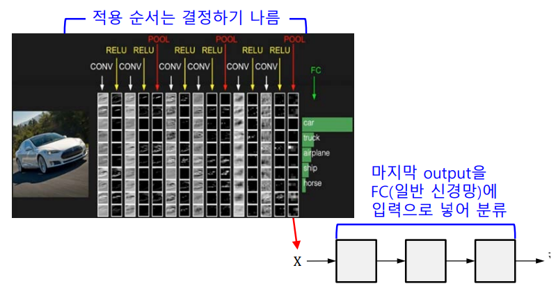 - 계층적으로 인식할 수 있도록 단계마다 이미지의 특징을 추출하는 것이 목적