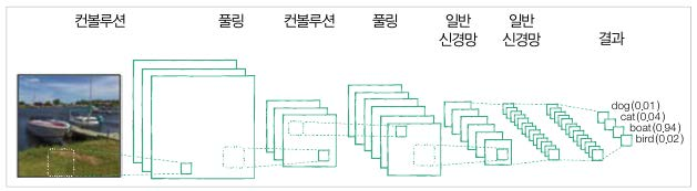 컨볼루션 -> 풀링 -> 컨볼류션 -> 드롭아웃 -> 풀링 -> 신경망 -> 드롭아웃 -> 신경망