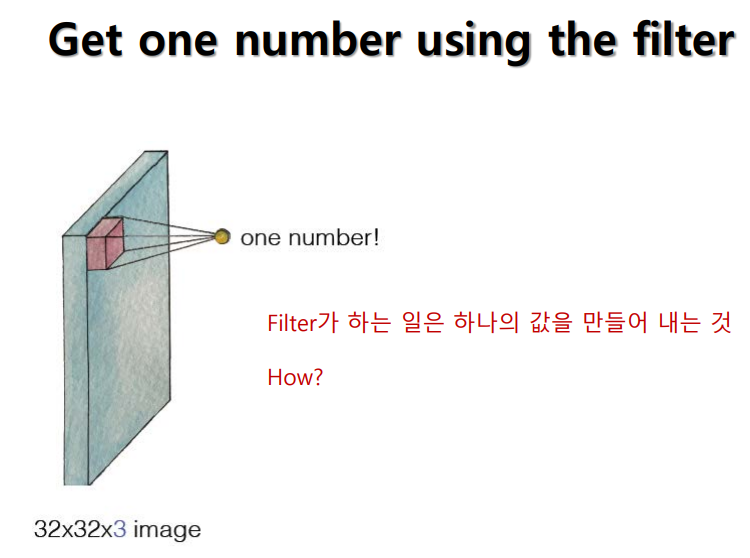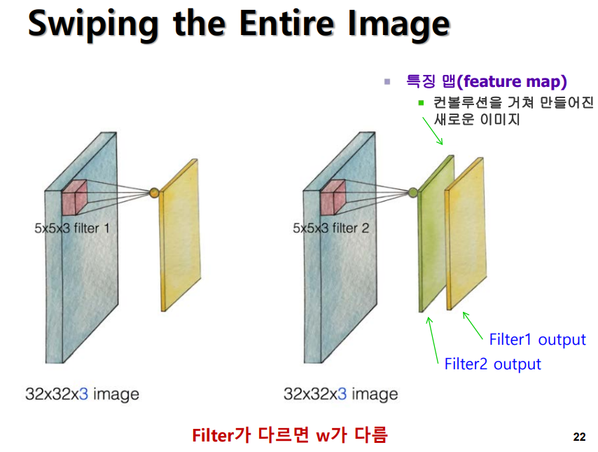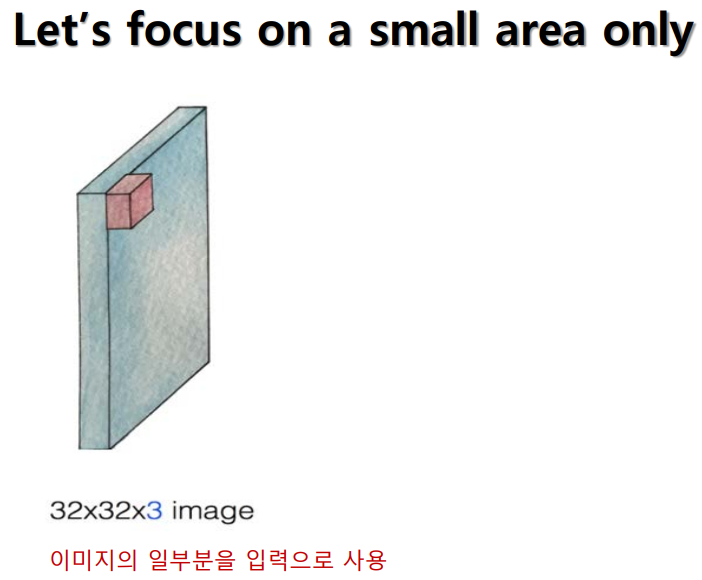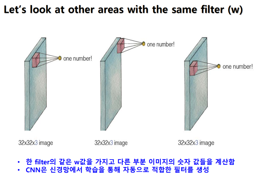 - 이미지 크기 만큼 가중치 계산해야 하는 문제 해결 - 필터(커널)만 학습하면 됨