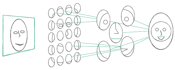 - 선 같은 저수준에서는 눈, 코, 입을 거쳐 얼굴 같은 고수준 추출