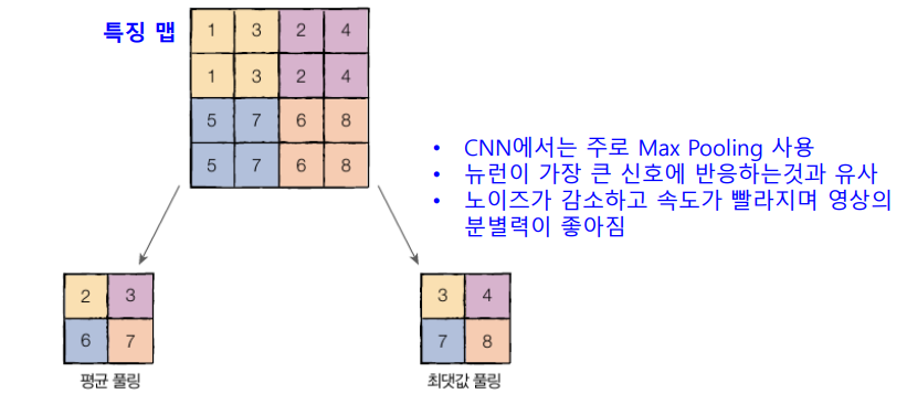 - 최대 풀링(Max Pooling), 평균 풀링(Average Pooling)
