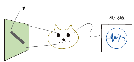 고양이에게 선 같은 간단한 이미지 보여주고 뇌 반응 검사