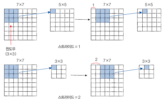 - 이미지 크기 만큼 가중치 계산해야 하는 문제 해결 - 필터(커널)만 학습하면 됨