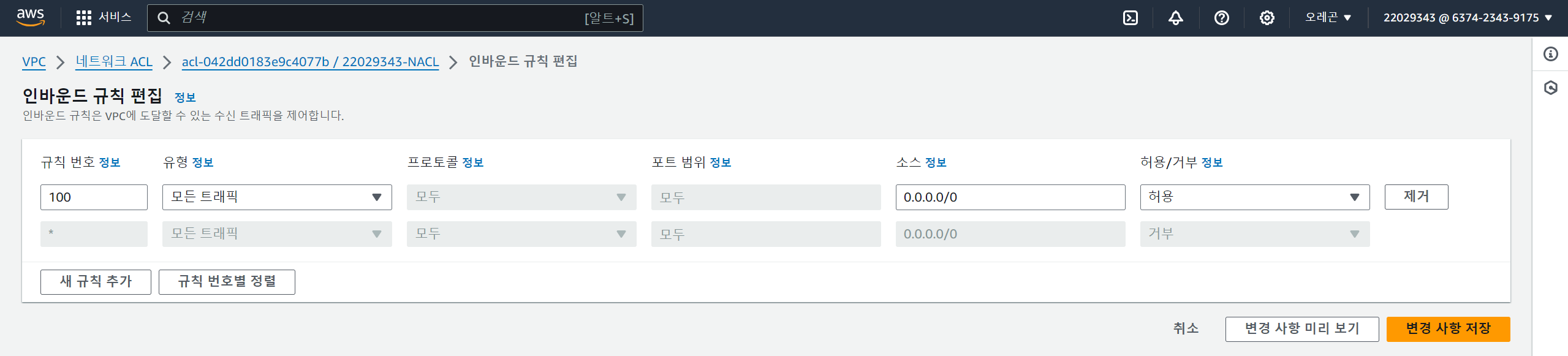 사용자 NACL 편집 시, 규칙번호 입력 -> 우선순위 결정
