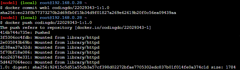 2) docker commit 및 push / 도커 이미지 생성 및 업로드