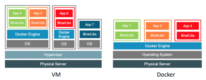 도커: Host OS 공유 -> APP 단위 처리 가능 -> 빠른 실행 및 배포