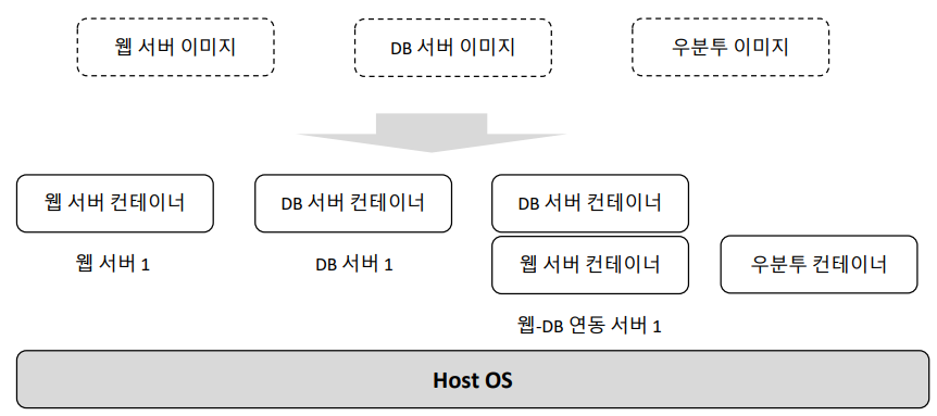 가상머신: Guest OS 필요 -> 오버헤드 발생