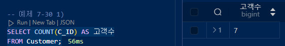 고객(Customer) 테이블에 고객이 몇 명 등록되어 있는지 검색해보자