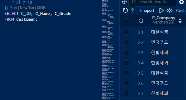제품 (Product) 테이블에서 제조업체(P_Company) 를 검색해보자.