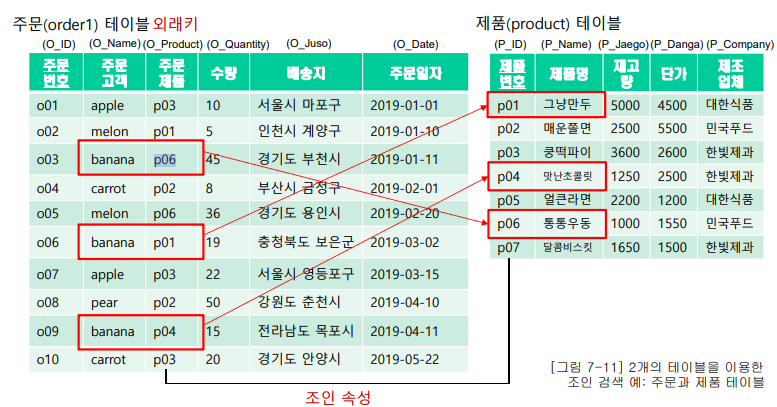 조인 검색: 여러 개의 테이블을 연결 -> 데이터 검색