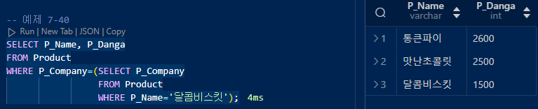 판매(Panmae) 데이터베이스에서 달콤비스킷을 생산한 제조업체가 만든