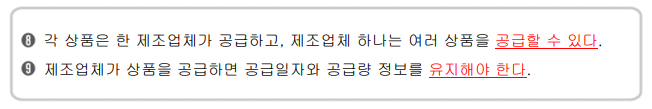 “제조업체” 개체는 관계에 선택적으로 참여 / “상품” 개체는 관계에 필수적으로 참여