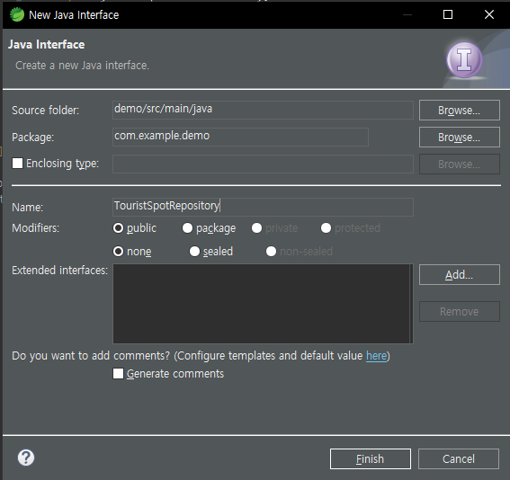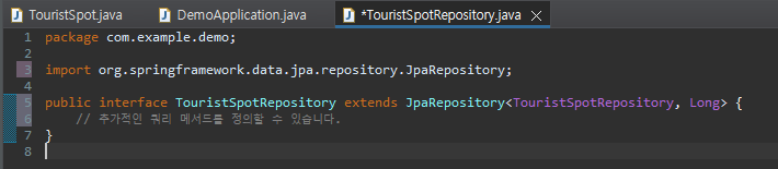 src/main/java/com/example/demo 패키지 아래에 새로운 리포지토리 인터페이스를 작성