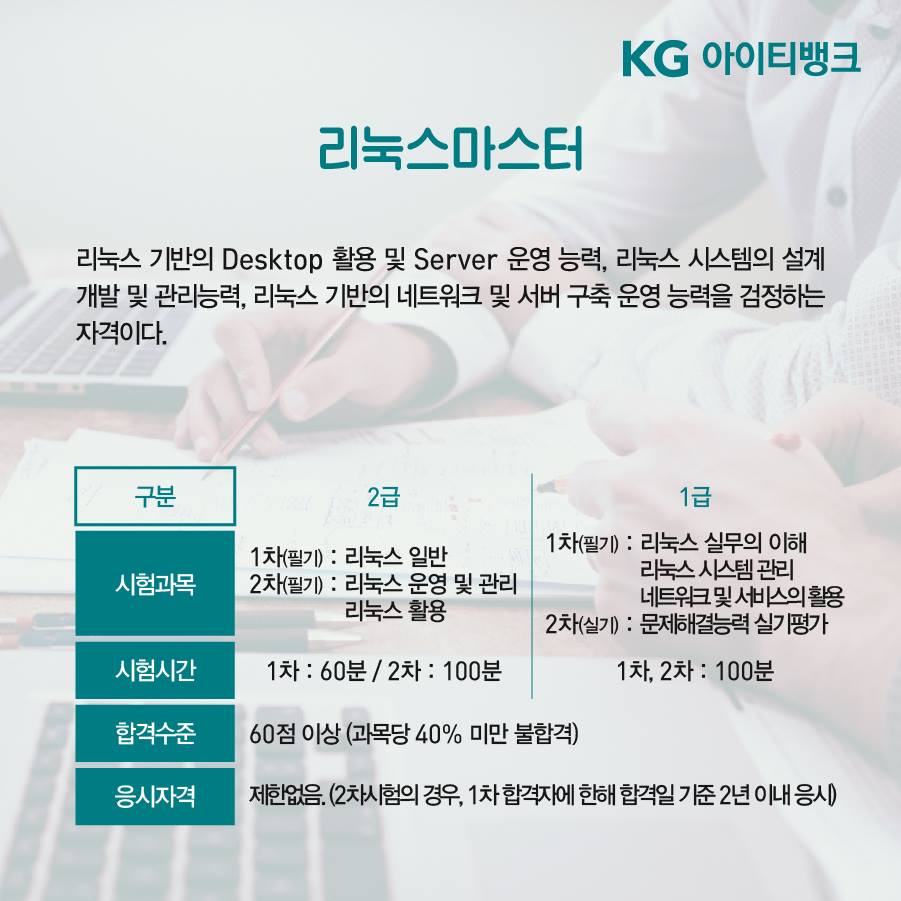 개요 및 검정기준 네트워크관리사란 서버를 구축하고 보안 설정, 시스템 최적화 등 네트워크구축 및 이를 효과적으로 관리할 수 있는 인터넷 관련 기술력에 대한 자격이다. 자격명칭 검정기준